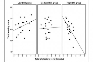 The objective of this study was to examine the relationship between verbal memory and total cholesterol (TC) levels related to body mass index (BMI) in healthy young women.
